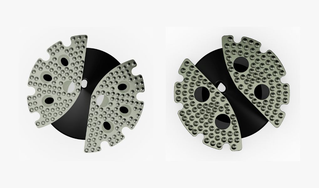 - Desgaste uniforme – Tipo de matriz combinada y distribución estratégica de diamantes que reduce el desgaste cóncavo y asegura máxima utilización de la corona.