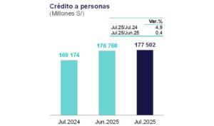 Por segmentos, el crédito a las personas subió 4,9 por ciento en julio con respecto al mismo mes del año anterior; en tanto, los otorgados a las empresas aumentaron 3,1 por ciento. El incremento de este último, sin considerar el impacto de las amortizaciones de los créditos del programa Reactiva Perú, fue de 4,3 por ciento interanual.