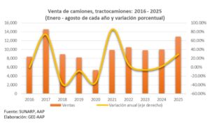 “El entorno financiero más favorable para las empresas, con mejores condiciones de crédito y un tipo de cambio más competitivo, ha incentivado la renovación y ampliación de flotas, consolidando así la tendencia de crecimiento en este rubro”, puntualizó el economista de la AAP.